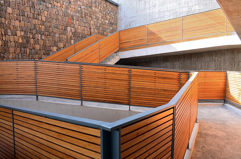 美術(shù)館大量運用桃花江戶外防腐竹材和室內(nèi)裝飾竹材,是典型的竹元素主題建筑,在文化場所的建設(shè)中竹材是設(shè)計師表達設(shè)計文化內(nèi)涵的有力工具。