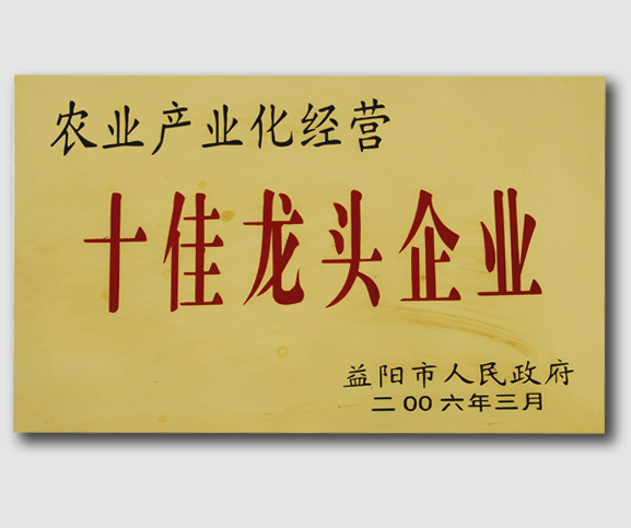 桃花江實(shí)業(yè)榮獲“農(nóng)業(yè)產(chǎn)業(yè)化經(jīng)營-十佳龍頭企業(yè)”榮譽(yù)稱號。