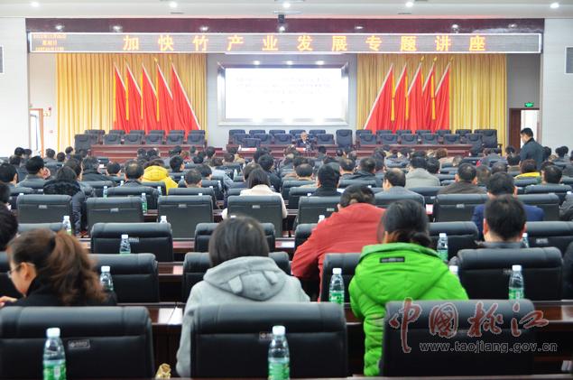 12月9日,黨政大樓附屬樓三樓會議室里,一場高規(guī)格的加快竹產(chǎn)業(yè)發(fā)展專題講座在這里舉行。縣委副書記何軍田主持,縣領(lǐng)導(dǎo)唐學(xué)文、李質(zhì)彬、馬文才、陳震宇、胡國清、肖立新、張亮榮、劉武出席。副處級以上干部,縣直單位、鄉(xiāng)鎮(zhèn)負(fù)責(zé)人,林業(yè)系統(tǒng)工作者共400余人濟濟一堂,認(rèn)真聆聽了中國工程院院士、中國竹子加工利用首席科學(xué)家、南京林業(yè)大學(xué)教授張齊生和國家林業(yè)局竹子研發(fā)中心科研處處長、竹筍專家、高級工程師吳良如精彩而豐富的竹產(chǎn)業(yè)講課。